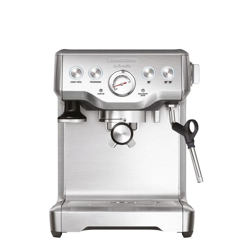 - Cafeteira Expresso de aço inox. Produto certificado conforme FALCÃO BAUER OCP 0003 Segurança Compulsório INMETRO. - Controle eletrônico PID de temperatura, para maior estabilidade da temperatura. - Controle ajustável de temperatura, para um café com sabor ideal. - Sistema de aquecimento por bobina térmica, a bobina de água integrada, de aço inox, controla com precisão a temperatura da água. - Volumes programáveis para a dose de expresso. - Tamper integrado removível de 54 mm. - Porta-filtro de 54 mm de aço inox. - Materiais sem BPA. - Bandeja coletora removível, com indicador de bandeja cheia. - Modo de desativação automática. - Bandeja de aquecimento para xícaras. - Tanque de água removível de 1,80 litros. - Seletor de vapor e água quente. - Controle volumétrico. - Água quente instantânea. - Bico de vapor de estilo comercial.