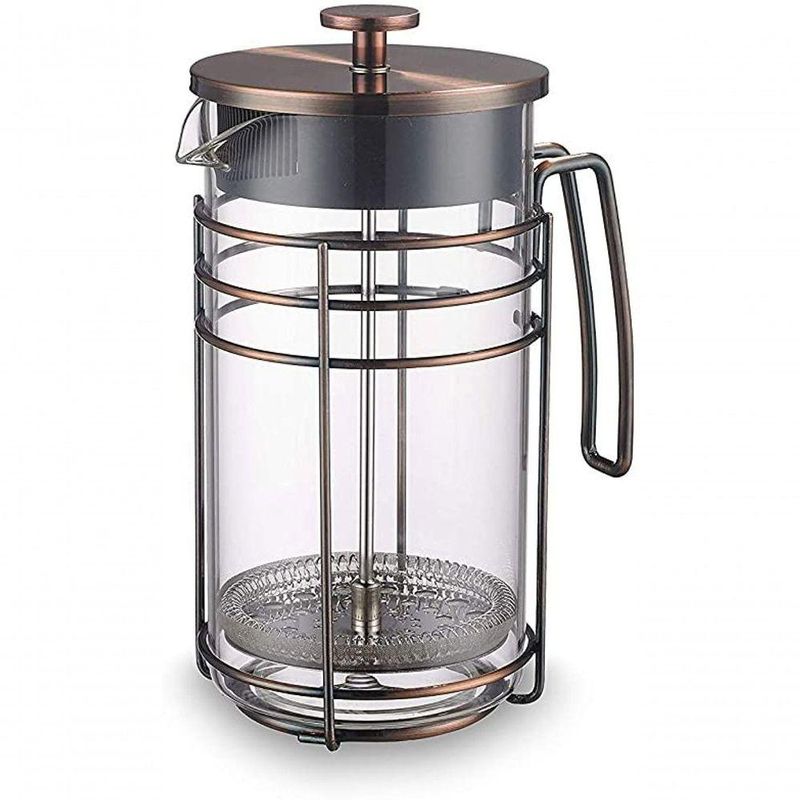 Cafeteira Francesa em Vidro e Aço Inox 350 ml OxfordO jeito mais saboroso de fazer café! A cafeteira francesa dispensa o uso de filtro de papel: o êmbolo da prensa é que separa o pó da água. Por esse motivo, os óleos naturais do café são preservados e passam para a bebida, deixando-a muito mais saborosa e encorpada. Feita em vidro com acabamento em aço inox.Cafeteira Francesa em Vidro e Aço Inox 350 ml Oxford - Especificações TécnicasNão utilizar em micro-ondas e em lava-louças.Material: Aço inoxidável e Vidro BorosilicatoCor: CobreCafeteira Francesa em Vidro e Aço Inox 350 ml Oxford - Incluso1 cafeteira de vidro com 16,5cm de altura e 350ml de capacidade1 filtro de aço inoxidável1 tampa de cobreCafeteira Francesa em Vidro e Aço Inox 350 ml Oxford - Na sua casa