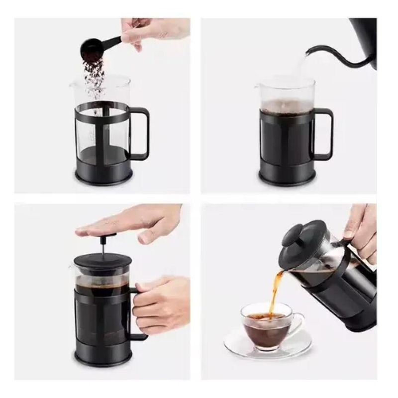 Cafeteira Francesa Prensa Inox Cremeira Vidro Jarra Cha Cafe Cremoso Manual Coador Filtro 350ml French Press