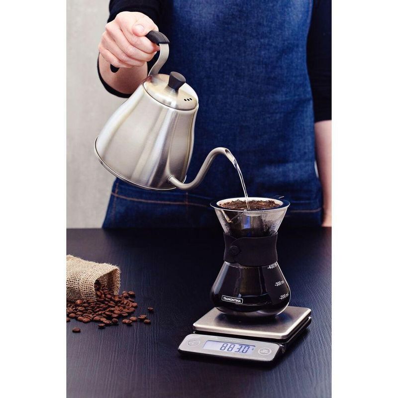 Se você é daquelas pessoas que não abre mão de um cafezinho delicioso no seu dia a dia, a cafeteira Tramontina com coador em aço inox 0,40 litros é indispensável. Produzida em vidro borosilicato, ela lhe garante uma filtragem direta através de um filtro reutilizável feito em aço inox, que não necessita de coadores de papel. A cafeteira ainda possui uma alça de silicone e proporciona um manuseio muito mais confortável e seguro, além de conceder a ela um estilo moderno e ecologicamente correto!