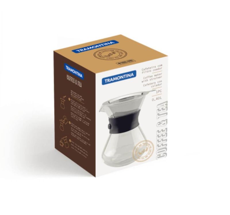 Se você é daquelas pessoas que não abre mão de um cafezinho delicioso no seu dia a dia, a cafeteira Tramontina com coador em aço inox 0,40 litros é indispensável. Produzida em vidro borosilicato, ela lhe garante uma filtragem direta através de um filtro reutilizável feito em aço inox, que não necessita de coadores de papel. A cafeteira ainda possui uma alça de silicone e proporciona um manuseio muito mais confortável e seguro, além de conceder a ela um estilo moderno e ecologicamente correto!