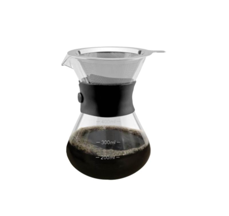 - Material: bule em borosilicato, filtro em aço inox, alça de silicone;