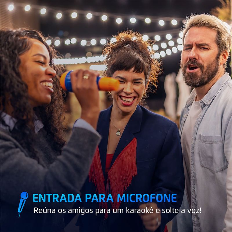 São 400W RMS de potência, com graves impactantes e agudos nítidos, graças ao sistema de som de 2 vias. Com transmissão Bluetooth 5.3, mais rápida e mais estável, e a função TWS, você pode duplicar o som e as luzes conectando duas caixas amplificadas sem precisar de fio. E tem ainda a entrada para um microfone para quando quiser reunir os amigos e fazer um divertido karaokê. Descubra mais sobre a CM-400-L da Mondial: