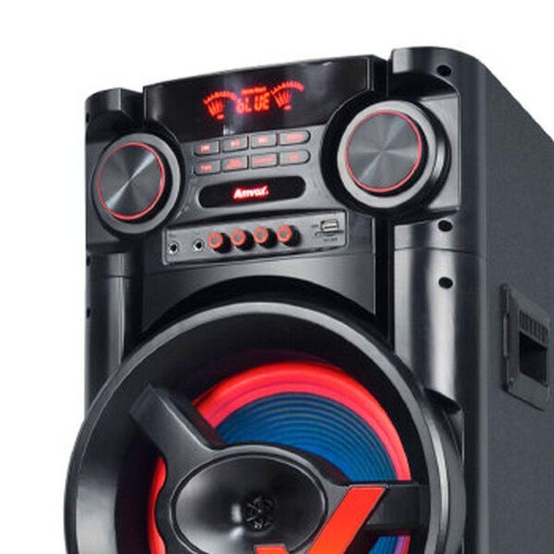 Caixa de Som Amplificada Amvox ACA 1900 New X Power X 1900WSinta cada emoção das suas músicas preferidas com a Caixa de Som Amplificada ACA 1900 New X da Amvox. Com 1900W de potência RMS, garante qualidade sonora de alto nível e conta com luzes de LED para deixar seus momentos ainda mais animados.Design IncrívelPensada para a sua praticidade, possui rodinhas e alças laterais que facilitam o transporte e permitem levar a diversão para qualquer lugar. Além disso, conta com entradas para microfone e instrumentos, tornando seu momento ainda mais memorável com um verdadeiro show.Um Espetáculo de SomEquipada com conexões USB e Bluetooth, é ideal para festas, reuniões ou até mesmo para animar a piscina com muito grave. Conta ainda com dois woofers de 12”, um tweeter de 3” e equalizador, que juntos proporcionam potência e qualidade sonora impressionantes.CaracterísticasMarca: Amvox