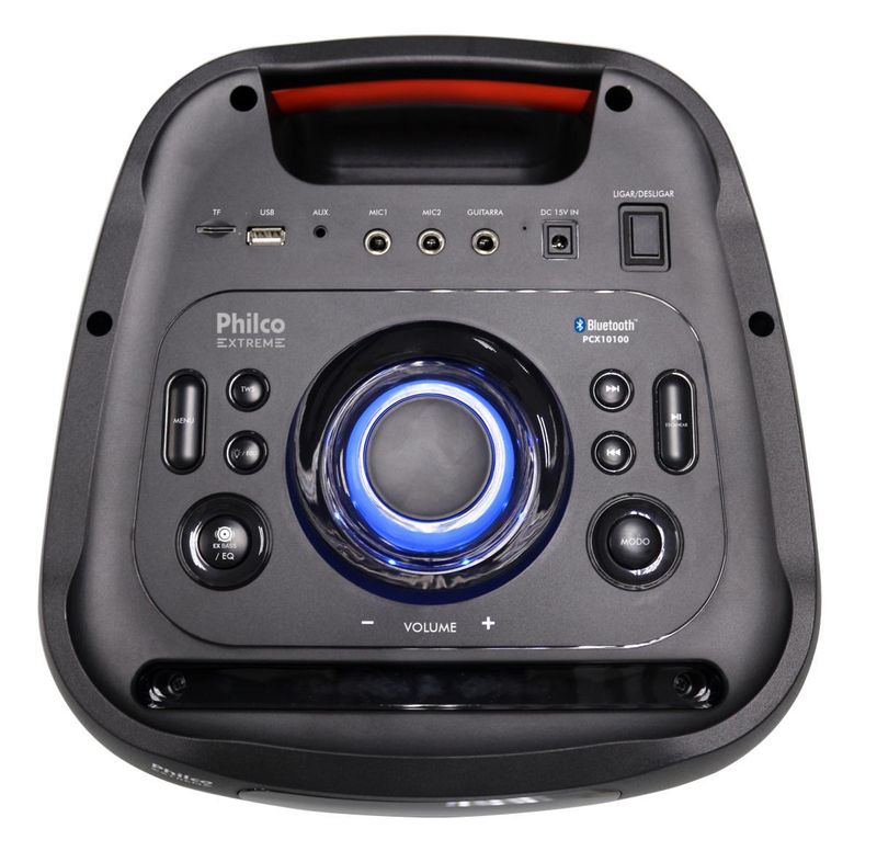 Os 2 woofers de 10¨ e o tweeter da Caixa de Som Amplificada Philco garantem um som rico e detalhado, com graves potentes que vão te fazer dançar.