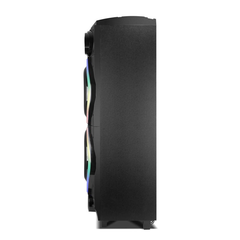 O Woofer Duplo de 12 polegadas com Tweeter garante uma experiência sonora completa, com graves marcantes. Com a função Flash Light, você ainda personaliza as luzes para criar o clima ideal. Torne cada encontro mais vibrante com efeitos visuais e som de qualidade. Tudo pensado para oferecer imersão total.