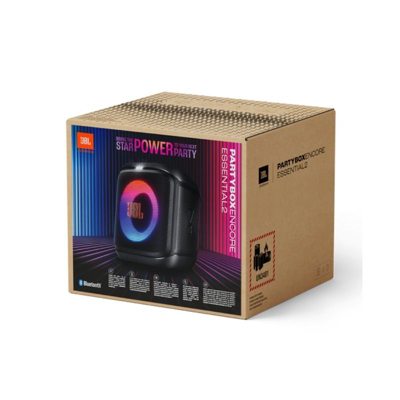 Ligue a JBL PartyBox Encore Essential 2 e deixe a diversão começar! Com esta caixa de som portátil, você vai querer ser o DJ de todos os eventos — com o som suave do JBL Pro Sound, um show de luzes que combina com o clima e um microfone para você brilhar como apresentador Sinta aquele impacto extra no peito com os agudos épicos e os graves profundos, esteja você ouvindo uma nova balada pop ou curtindo um clássico romântico. Depois de acertar o som, é hora de elevar o clima com um show de luzes que dança no ritmo da sua batida. De coberturas abertas a porões lotados, a JBL PartyBox Encore Essential 2 sabe se adaptar, com sua alça prática para transporte e design à prova de respingos com classificação IPX4. O que é melhor do que uma JBL PartyBox Encore Essential 2? Duas! Emparelhe duas para uma verdadeira experiência estéreo ou conecte com outras caixas de som compatíveis com JBL Auracast™ para uma festa ainda mais agitada. Mantenha a vibe lá em cima com até 15 horas de reprodução com uma única carga. Deixe o clima perfeito com o app JBL PartyBox, onde você pode controlar sua playlist, adicionar efeitos sonoros divertidos e escolher o modo de luz ideal — tudo isso enquanto arrasa na pista com o seu melhor passinho. Seja qual for a ocasião, a JBL PartyBox Encore Essential 2 sabe como despertar todas as emoções.