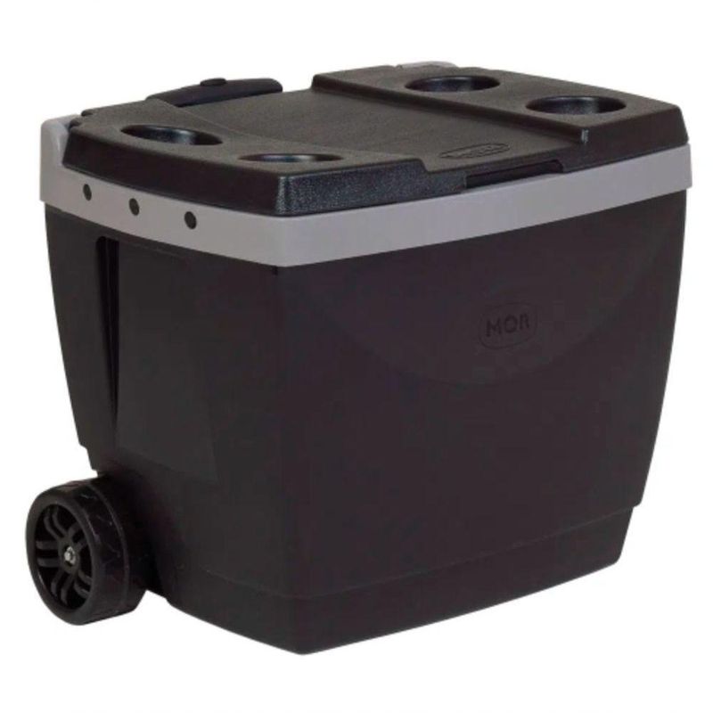As Caixas Térmicas Mor possuem parte interna e externa em polipropileno injetado, tampa soprada e contam com isolamento em isopor. As dimensões internas da Caixa Térmica permitem que sejam armazenadas 56 latinhas de 350ml, 44 latinhas de 473ml, 29 unidades das de 600ml ou 8 unidades de 2L.