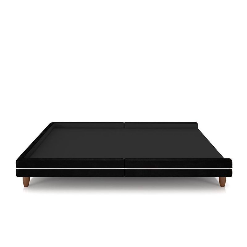 Cama Avulsa Para Colchão Casal Torres Pés Em Madeira Pu Preto G91 - Gran Belo