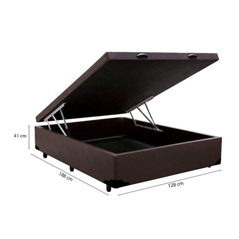Colchão Marrocos é um colchão de qualidade com tecido poliéster e espuma D33.O Box Baú Marrom com Pistão tem um sistema de fácil abertura por pistões a Gás amortecedores. Proporciona para o seu quarto melhor aproveitamento de espaço, pois seu amplo baú interno é ideal para guardar objetos, roupas de cama, travesseiros , edredons , etc.... ;Especificações Técnicas da Cama Baú:- Material: Madeira tratada;- Proteções: Antiácaro, Antialérgico, Antifungo, Antimofo;- Peso máximo recomendado: até 100kg por pessoa;- Altura do baú: 41cm (35cm com 6cm dos pés);- Revestimento: Tecido Sintético;- Cor: Marrom;- Quantidade de Pés: 6 pés;- Material dos pés: Plástico;- Garantia: 3 meses;- Tamanho: Viúva;- Dimensões do produto altura x largura x comprimento: 41x128x188cm. ;Características do Colchão: ;- Material do Colchão: Composto por Espuma de alta resistência D33 e EPS em sua base que proporciona uma maior estruturação e firmeza do produto; ;- Tipo de Espuma: D33; ;- Tecido do Colchão: Poliester; ;- Peso máximo recomendado: até 110kg (por pessoa); ;- Garantia: 3 meses; ;- Dimensões do produto (altura x largura x comprimento): 30x128x188; ; ;Cuidados com o Produto: ;*Não coloque seu colchão sobre estrado inteiriço exceto se utilizado sobre um box. ;*Mensalmente escove e aspire seu colchão, mantendo-o sempre limpo. ;*Não utilize ferro de passar roupas, secador de cabelos e outra fonte de calor ou vapor sobre o colchão. ;*Para melhor conservação do produto utilize sempre um protetor de colchão. ;*Nunca dobre ou amasse o colchão.*A cada 3 meses gire o colchão lateralmente e de baixo para cima (com exceção dos colchões com tecnologia No Turn). ;Importante:-As cores do produto podem variar de acordo com o monitor, a iluminação do ambiente ou sua percepção visual;-Não nos responsabilizamos em subir pelas escadas ou içar o produto.-Montagens, desmontagens e instalações são responsabilidades do cliente. Estes serviços não estão inclusos no valor do produto.-Para evitar imprevistos na sua entrega, confira as dimensões do produto no momento da compra e certifique-se de que ele passará por elevadores, portas, escadas e corredores.
