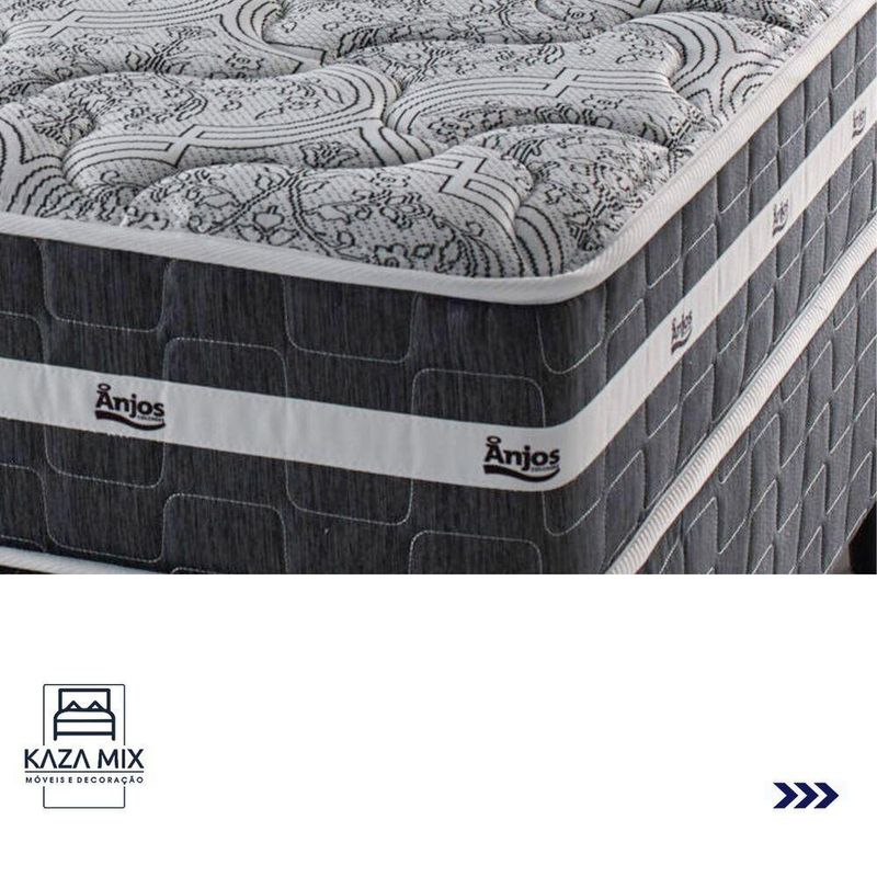 Cama Box Baú Bege E Colchão Black Graphite Molas Ensacadas Casal 138x188x27 Anjos