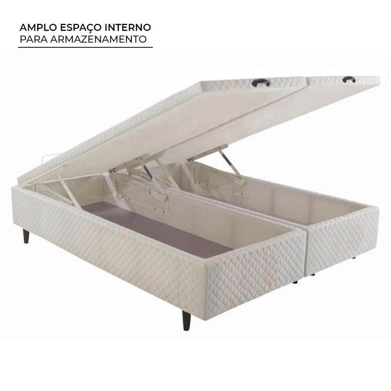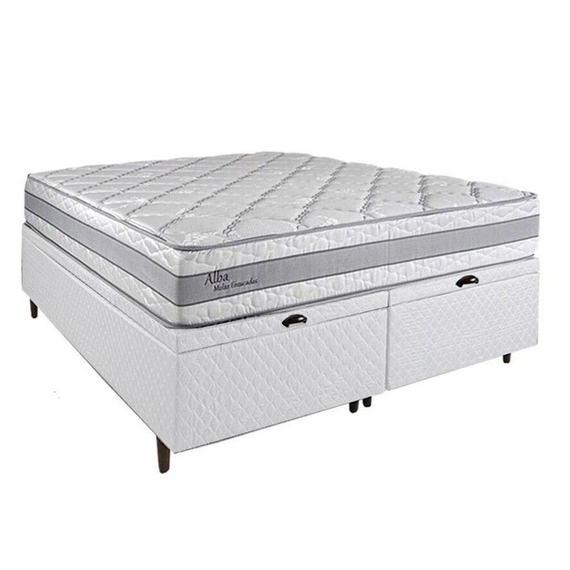 CAMA BOX BAÚ BRANCO HERVAL QUEEN ALBA, 72X158X198 CM, MOLAS ENSACADAS A Cama Box Baú Branco Herval Queen Alba entrega o conforto uniforme das molas ensacadas e o amplo espaço do baú para armazenamento e organização de sua rotina.