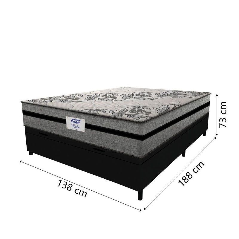 Cama Box Baú Casal Colchão Gazin Com Molas Ensacadas Rubi 138x188x73cm Suede Preto/Cinza