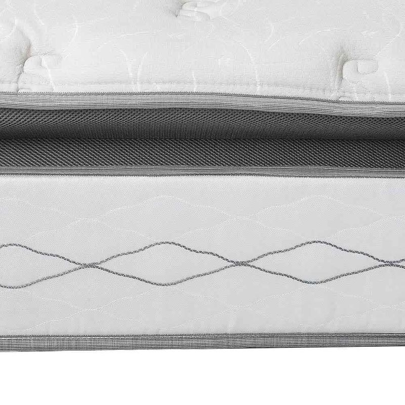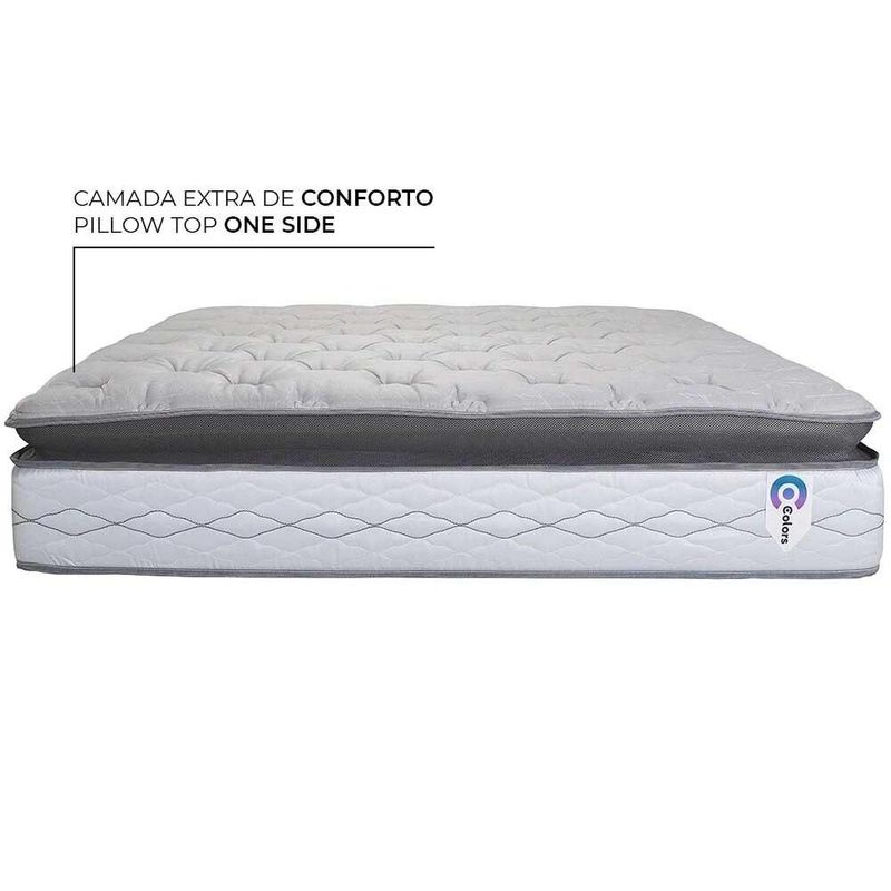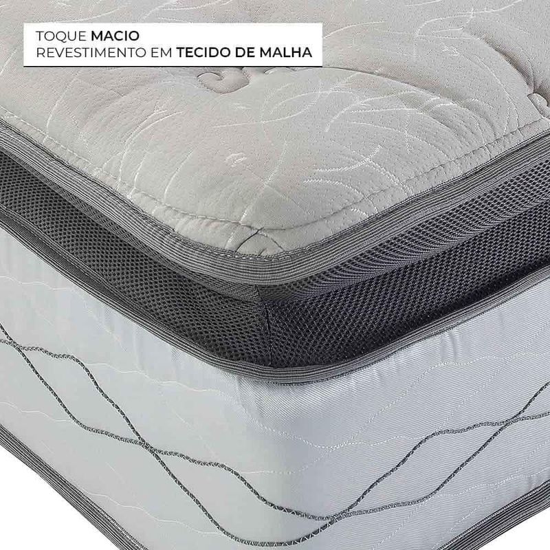 ESPECIFICAÇÕES COLCHÃO Nível de conforto: Confortável; Tipo de molas: Molas Ensacadas; Estrutura do colchão: Molas, espuma de alta densidade, feltro resinado e lâminas de espumas; Pillow Top One Side; Tecido do colchão: Malha; Composição do tecido do colchão: 100% Poliéster.