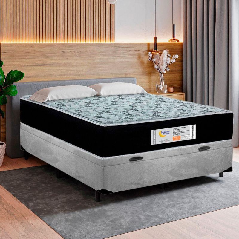 Cama Box Baú Casal Suede + Colchão Molas Ensacadas Sereneprime Sonnolux 138x188x69 Cinza