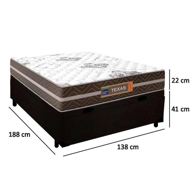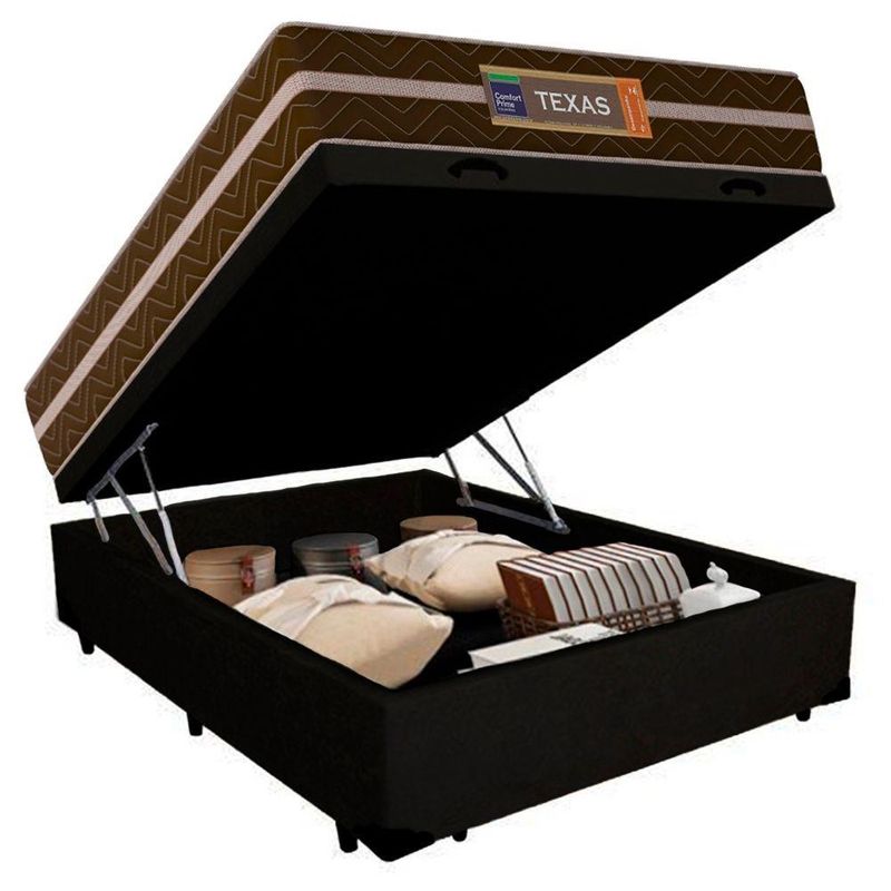 Cama Box Baú Casal Suede + Colchão Molas Ensacadas Texas Prime Colchões 138x188x63cm Preto
