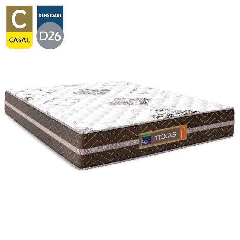 É uma combinação que oferece uma solução completa, agilidade e praticidade na aquisição da sua cama. O Colchão Casal Texas Molas Ensacadas foi criado pensando em você. Possui molas ensacadas em sua composição, o que proporciona um conforto único. A capacidade de suporte é de até 120kg por pessoa, garantindo conforto durante o sono, além de promover um melhor apoio e qualidade de vida.A Cama Box é a opção ideal para maior aproveitamento do quarto, pois oferece espaço extra e praticidade. Produto de alta durabilidade, resistente e excelente qualidade em acabamento, totalmente em suede, o que lhe confere elegância e sofisticação em qualquer ambiente.Características do Colchão:- Marca: Prime Colchões- Cor: Marrom/Branco- Espuma: D26- Modelo: Texas- Tamanho: Casal- Tipo de Molas: Ensacadas- Revestimento Superior: Poliéster- Revestimento Lateral: Poliéster- Capacidade: 120kg por pessoas- Interior: Molas ensacadas, com espuma D26- Dimensões do colchão (largura x comprimento x altura): 138x188x22cmCaracterísticas do Box:- Estrutura Interna: Estrutura em madeira 100% de Reflorestamento