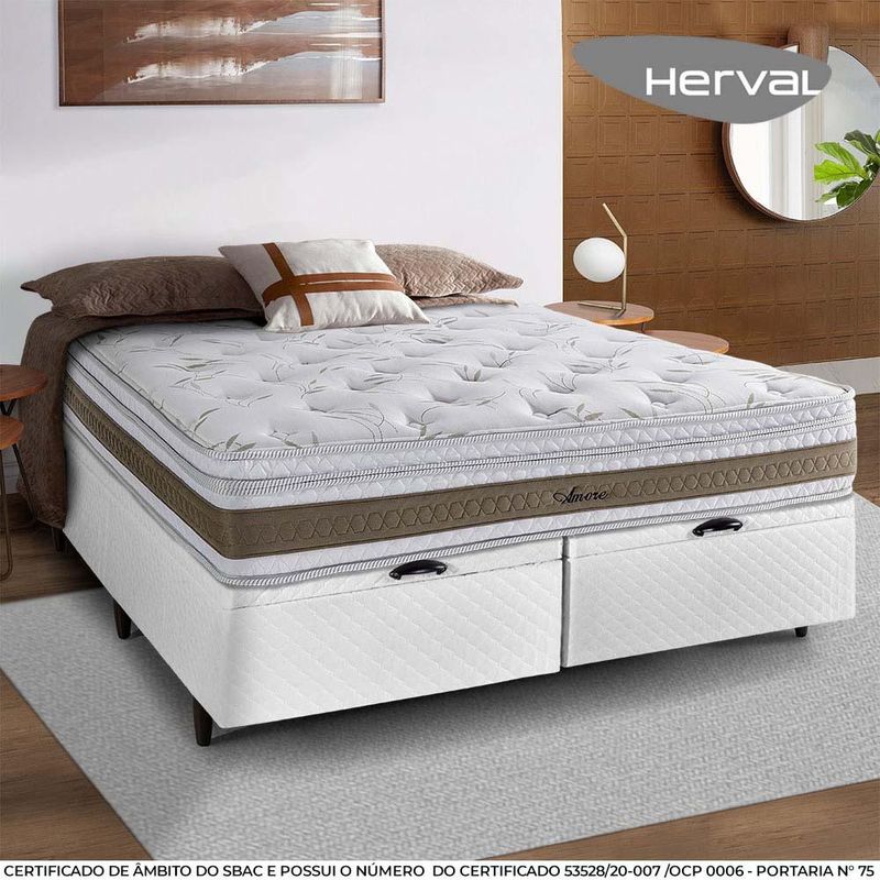 CARACTERÍSTICAS Marca: Herval Modelo do Colchão: Amore Nível de conforto do Colchão: Firme Uso: Queen Cor: Branco Tipo do Sommier: Baú Bipartido