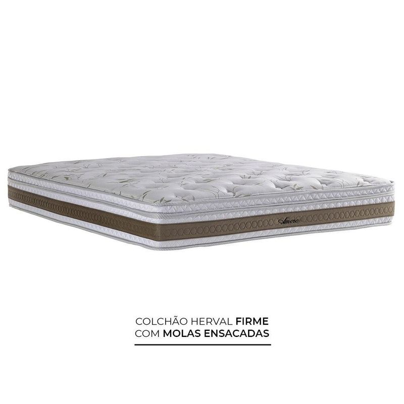 O Colchão Herval Amore é fabricado com Molas Ensacadas. O colchão ainda possui camadas de espumas de alta densidade sobre o sistema de molejo, deixando-o mais confortável. A Base Idea com Baú possui sua estrutura fabricada com Madeira Maciça de eucalipto reflorestado. Esse modelo de sommier é bipartido, e possui dois baús para armazenamento.