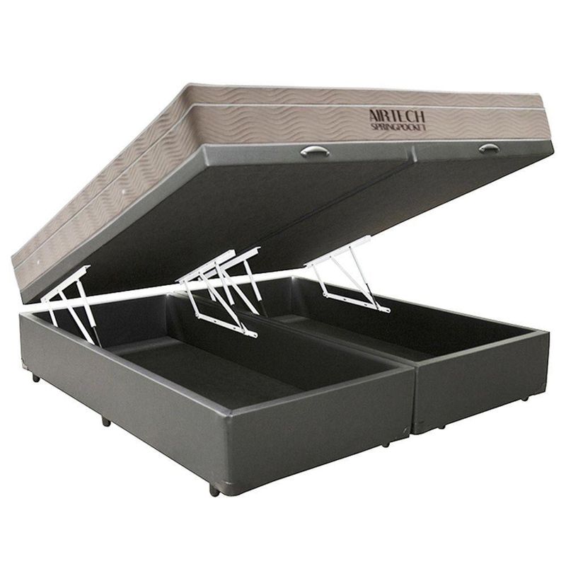 Cama Box Baú King Sintético Bipartido + Colchão Ortobom Airtech Molas Ensacadas 193x203x65 Cor:cinza