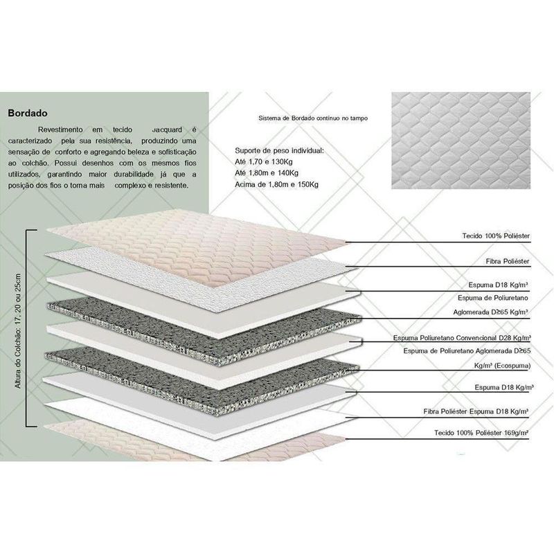 Camadas Interna do Estofamento de Espuma do Colchão