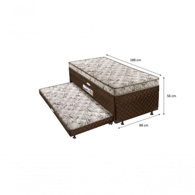 Cama Box Baú Solteiro Conjugada Com Mola Com Cama Auxiliar - Marrom