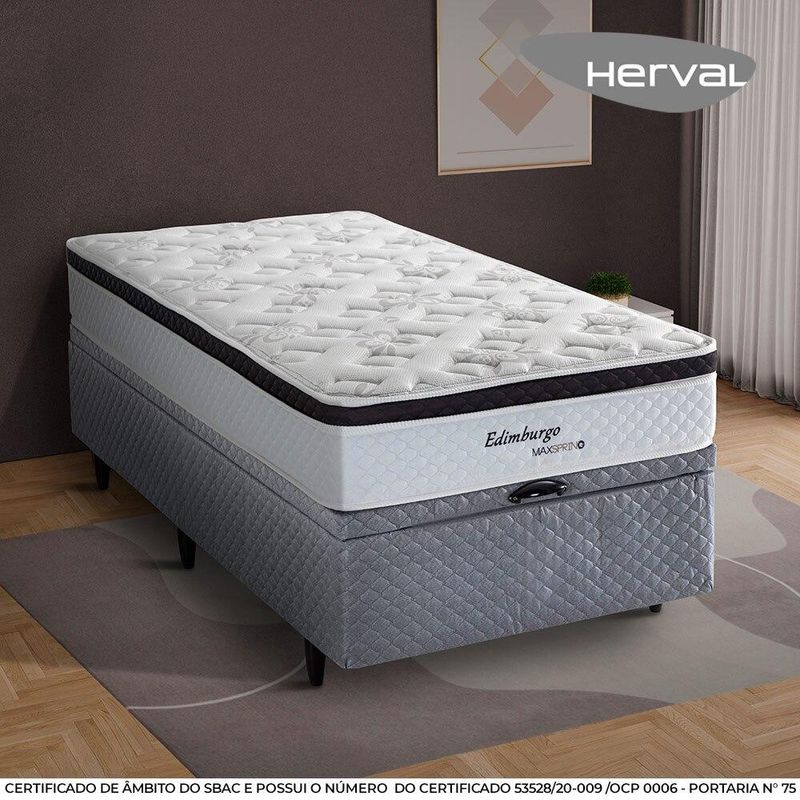 Cama Box Baú Solteiro Herval Edimburgo, Molas Maxspring, 71 x 88 x 188 cm