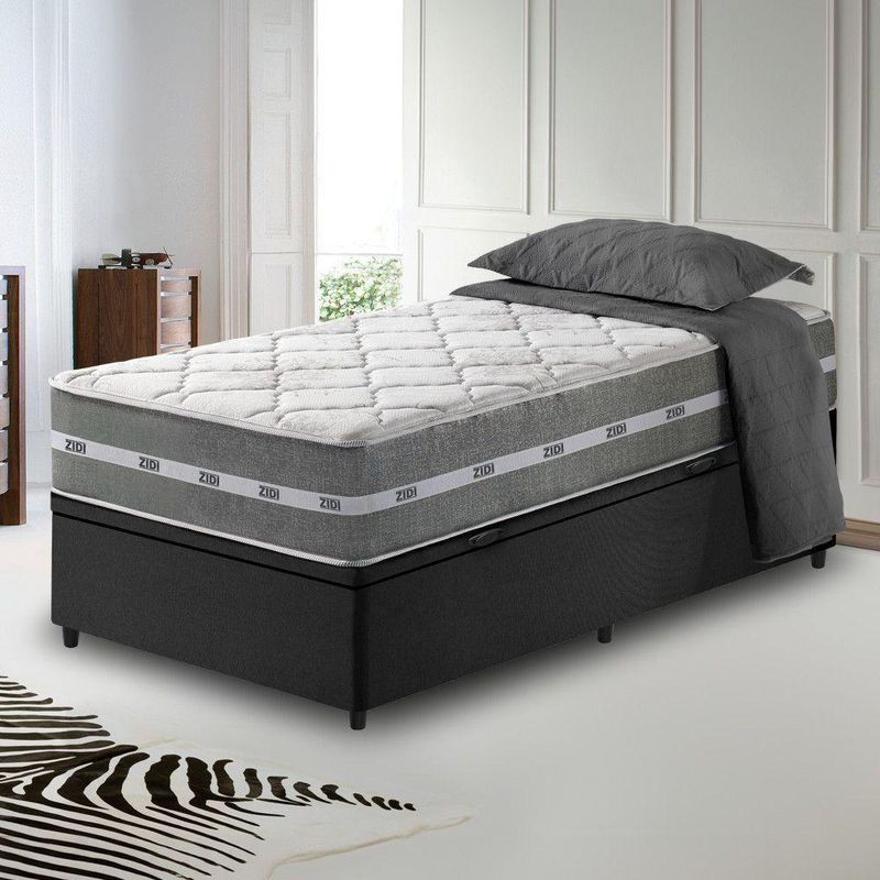 Cama Baú Solteiro Preto + Colchão Molas Ensacadas Miami Cinza Com Preto