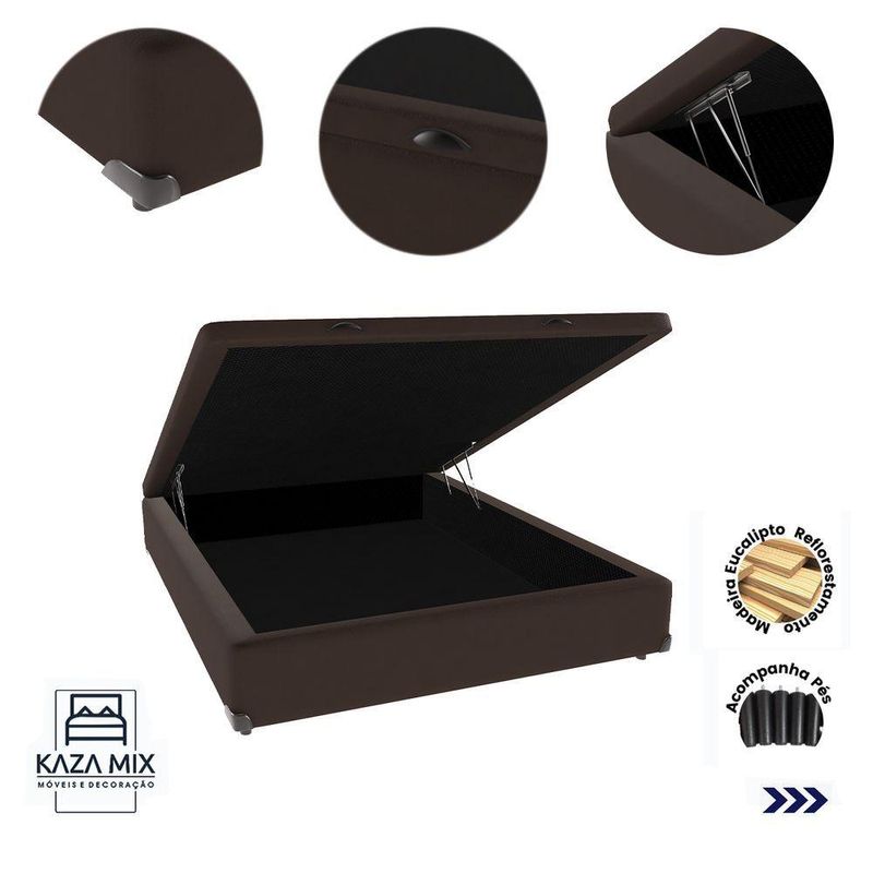 Com um baú generoso, ela oferece a solução perfeita para armazenar travesseiros extras, cobertores, malas e muito mais. Além disso, sua estrutura robusta suporta até 150 kg por pessoa, garantindo a sustentação ideal para o seu colchão e prolongando sua vida útil.
