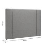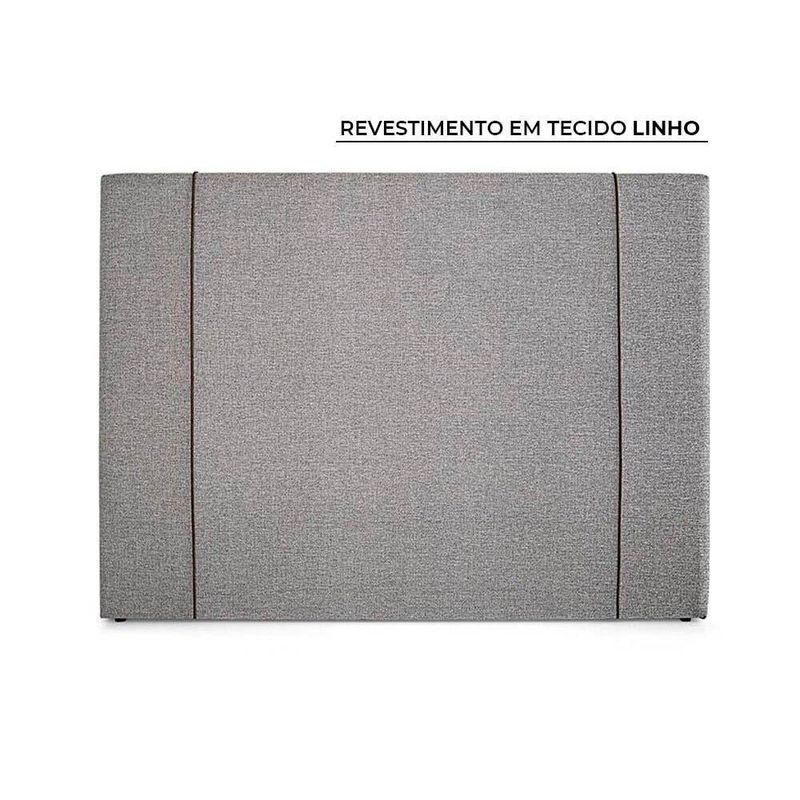 CABECEIRA Cor: Cinza; Tamanho: Casal; Revestimento: Tecido Linho; Composição do tecido: 100% Polipropileno; Enfeite: Marrom Chocolate (Sintético); Estrutura: MDF, grampos de metal e cola PVA.