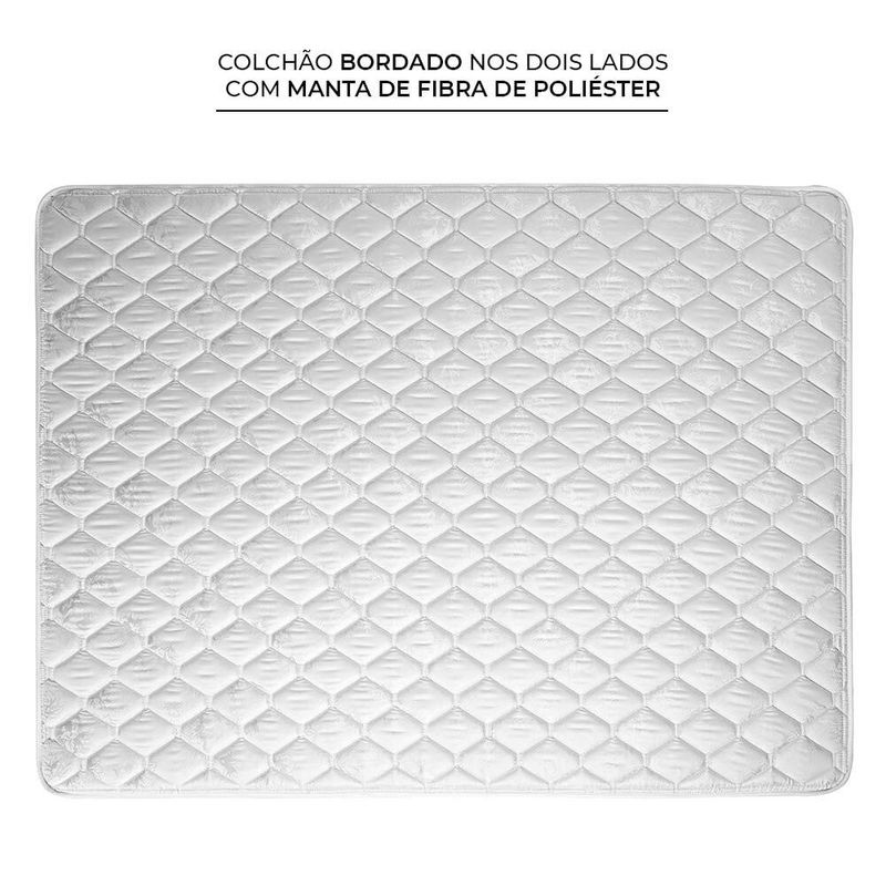 ESPECIFICAÇÕES COLCHÃO Conforto Firme; Estrutura em espumas de média e alta densidade (D65 - D28 - D65); Bordado com uma lâmina de espuma de densidade 18 (D18); Tecido Plano 100% Poliéster; Tecido com respiro antibacteriano.