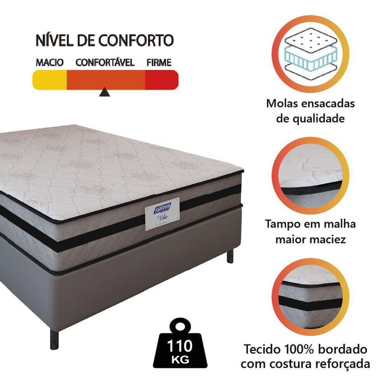 MODELO: Cama Box Casal Queen Colchão Com Molas Ensacadas Vibe 158x198x60cm Suede Suporta Até 110 Kg Por Pessoa