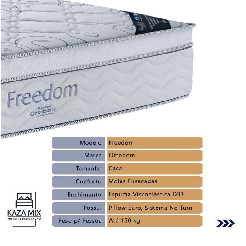 O Freedom é produzido pela renomada marca Ortobom, conhecida por sua expertise em tecnologia do sono. Com anos de experiência no mercado, a Ortobom é reconhecida por oferecer produtos inovadores e de alta qualidade, que atendem às necessidades dos clientes mais exigentes.