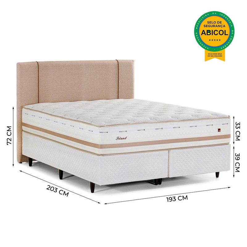 CAMA BOX COM CABECEIRA HERVAL KING IRLAND, 72 x 193 x 203 CM, MOLAS MAXSPRING