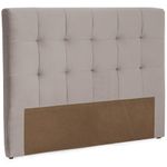 Na cabeceira estofada Herval, o veludo molhado bege com nuances acinzentadas. Os detalhes em botonê agregam um charme a mais.