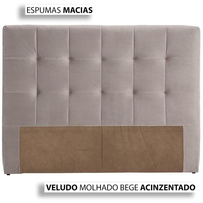 CABECEIRA Tecido Veludo Molhado 100% Poliéster | bege acinzentado Detalhes botonê Espuma soft D18 | manta de espuma ecosoft Madeira eucalipto de reflorestamento Montagem em grampos de aço e cola PVC