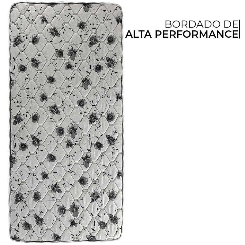 Bordado de alta performance na parte superior do colchão, uma camada extra de conforto, combina firmeza e conforto de forma única. Por fim, o tecido Floral Black é caracterizado pela durabilidade e durabilidade.
