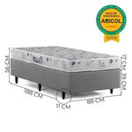 DIMENSÕES (AxLxP) CAMA BOX Alturas: colchão 17 cm | base 39 cm (pés 11 cm) Tamanho total: 56 x 88 x 188 cm Peso: 29 Kg