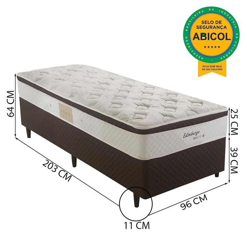 CAMA BOX HERVAL SOLTEIRO EDIMBURGO, 64x96x203 CM, MOLAS MAXSPRING Este colchão combina conforto e resistência em um único produto, pois possui a marca própria da Herval, Molas Maxspring. É uma mola contínua que proporciona firmeza e um alto nível de sustentação ao colchão, além de um alto grau de conforto, mesmo ao longo do tempo.