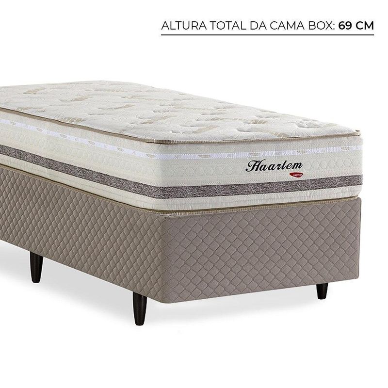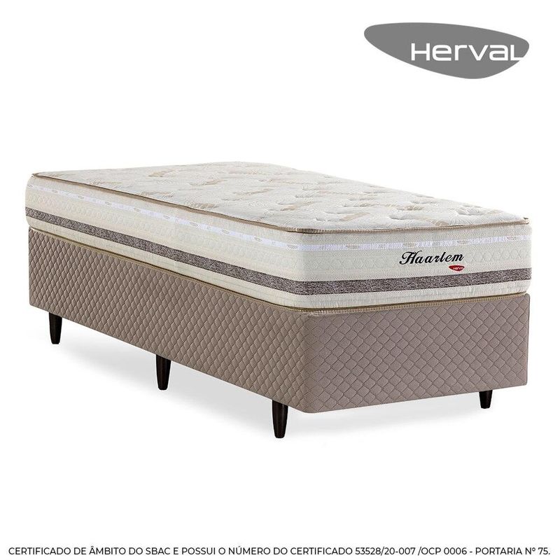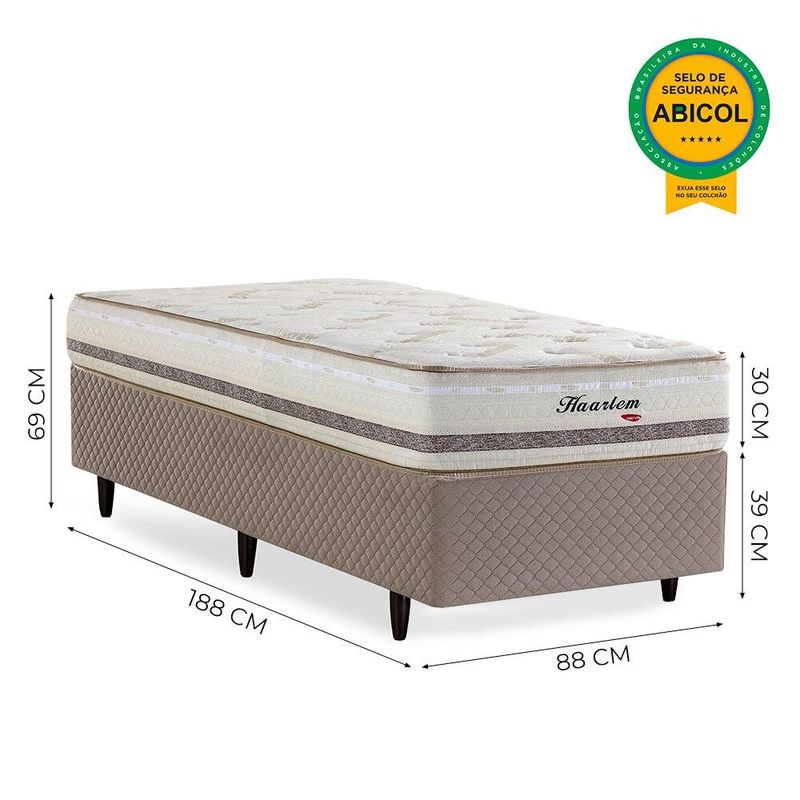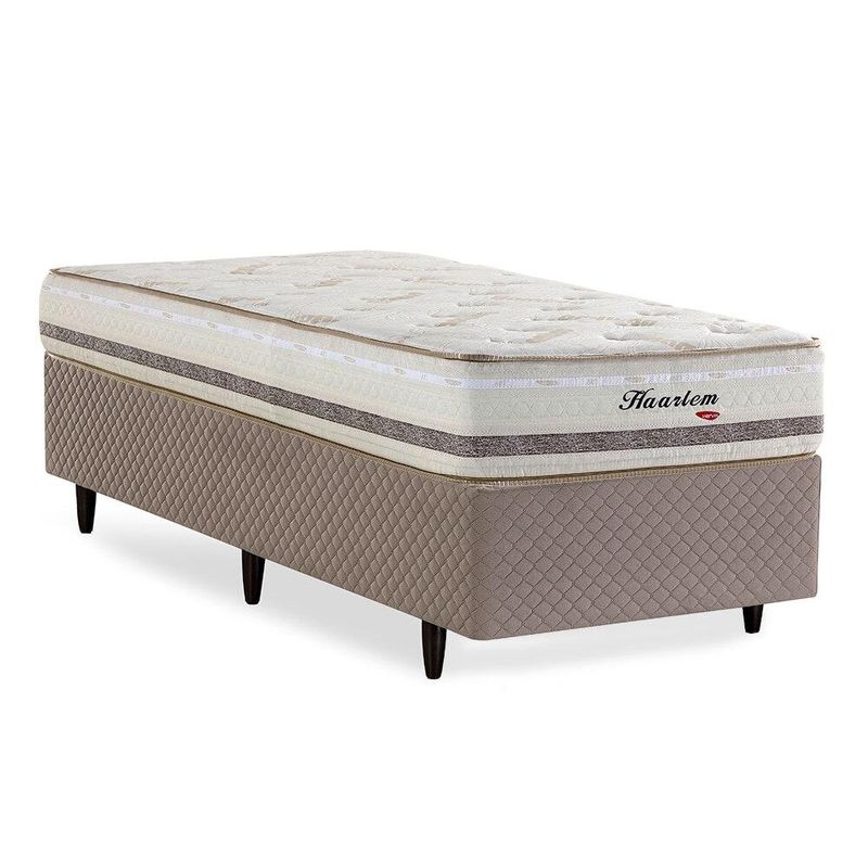 CAMA BOX HERVAL SOLTEIRO HAARLEM, 69x88x188 CM, MOLAS ENSACADAS, SUEDE BEGE