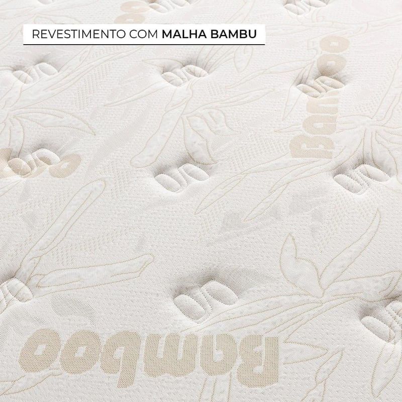 REVESTIMENTO O Colchão Herval Haarlem é revestido em tecido de Malha Bambu, de toque macio e refrescante. Esse tecido conta com respiração entre as camadas, que promove a troca de calor, tornando ainda mais agradável a sua temperatura. A Base Herval Idea é revestida em tecido Suede 100% poliéster, na cor bege.