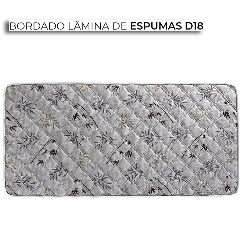 ESPECIFICAÇÕES COLCHÃO Nível de conforto: confortável; Espuma: densidade 28 (D28); Tecido: floral com toque super suave; Revestimento: tecido 100% Poliéster; Bordado: normal nos dois lados da Cama Box; Bordado: lâmina de espuma D18.