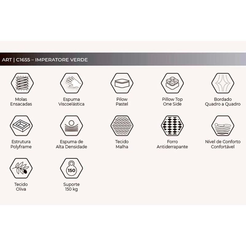 Todas as informações divulgadas são de responsabilidade exclusiva do fabricante/fornecedor. Forração Revestimento do Colchão: Malha de Alta Qualidade Nível de Firmeza do Colchão: Macio c/ Firmeza Nossa Avaliação do Colchão: Qualidade Excelente Peso Máximo Suportado do Colchão: 150 kg Tempo de Garantia do Colchão: 12 meses Certificação de Qualidade do Colchão: Qualidade Aprovada Tecido de Revestimento da Faixa Lateral do Colchão: Malha Bordado do Revestimento do Colchão: Pantográfico Tipo de Pillow: Pillow Top Americano Modo de Utilização do Colchão: One Side Forração do Revestimento Inferior do Colchão: Antiderrapante Camadas Interna do Estofamento de Espuma do Colchão: Viscoelástica Tecido com Tratamento: AntiÁcaro e AntiFungo Características Gerais da Cama Box: Indicado para Cama de Solteiro Certificação de Qualidade: Qualidade Aprovada Garantia Legal de Fábrica CDC em Meses: 3 Possui Garantia Complementar de Fábrica após Prazo Legal?: Garantia de Fábrica Com pillow top: Sim Tipo de Colchão: Molas Tipo de Mola do Colchão: Ensacadas MasterPocket É duplo pillow: Não É eco-friendly: Sim Está embalado a vácuo: Não Com função de massagem: Não Possui Memory Foam (Espuma Viscoelástica): Sim É hipoalergênica: Não É antiácaros: Sim Com base dividida: Não Este Produto Inclui Travesseiro: Não Com alta densidade: Sim Este Colchão é Magnético: Não É colchão na caixa: Não É Antifungos?: Sim Com aromaterapia: Não Acompanha Manual de Instalação e Montagem?: Não Tipo de Espuma do Colchão: Espuma de Poliol Vegetal Com memoria: Sim É inteligente: Sim É antihongos: Não É produto personalizado: Não Desenho do tecido: Big freshness Tipo de pillow do colchão: Pillow top Número de registro/certificação INMETRO: N/A Tipo de Produto: N/A Estrutura do Colchão: Mola Ensacada Unidades por kit: 1 É kit?: Sim É resistente à água: Não É Lavável?: Não Necessita Montagem?: Não Condição do item: Novo Fonte do produto: N/A Origem: Nacional Código universal de produto (GTIN): 7899285972439 Produto precisa de Montagem?: Sim, a montagem é simples mas sugerimos a contratação do nosso serviço de montagem (para os CEPs em que o serviço está disponível) ou de algum profissional experiente de sua preferência Descrição do Tamanho: 1.00x:193.00x203.00 cm Estado de Origem: RJ País de origem: Nacional Peso Produto Com Embalagem (Kg): 158.67 Material para Filtro: N/I Cor Mobly: N/I Condição do Item: Novo Numeral: 0 Não se Aplica: N/A Não Possui: Não Linha/Modelo: Herval Cor Cnova: Blush Cor Meli: Ciano Categoria - Sub: Cama Box+Colchão de Molas Categoria - Pai: Conjunto Cama Box + Colchão Comprimento Embalagem: 203.00 Largura Embalagem: 193.00 Altura Embalagem: 1.00 Kit: 1 Peso: 158.67 Kg Peso Real Kg: 158.67 Peso Cubado: 527.50 Volumes: 3 M3: 2.11 Comprimento/Profundidade: 203 cm Largura: 193 cm Altura: 1 cm Tamanho Montado: Larg:193.00 x Comp/Prof:203.00 x Alt: 1.00 Comprimento/Profundidade Montado: 203.00 Largura Montado: 193.00 Altura Montado: 1.00 Tamanho Cama Colchão: King Marca: Herval Fabricante: Herval Linha: Herval