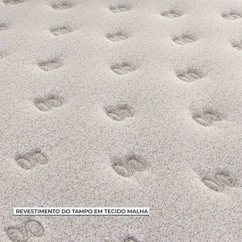 Especificações Técnicas: Nível de Conforto: Firme; Molas: Maxspring; Tipo de mola: 206 molas p/m² Estrutura do colchão: Um corpo único, monobloco, de molas entrelaçadas, em aço com arame ATC (Alto Teor de Carbono) 2,00 mm de diâmetro. No bordado conta também com lâminas de espuma de alta performance de baixa densidade proporcionando mais conforto. Pillow Top One Side: Camada de espuma localizada na parte superior do colchão, sobre o molejo; Tecido do Colchão: Malha; Composição do tecido do colchão: Tampo tecido Malha 100% Poliéster. Faixa tecido Plano 51% Poliéster 49% Algodão.