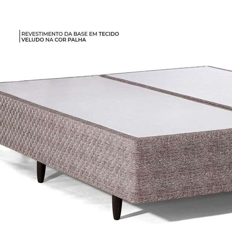 ESTRUTURA A Cama Box King Herval Irland conta com molas Maxspring, que aliviam a tensão ao se deitar e oferecem ainda mais conforto. Ainda conta com espuma de alta densidade, que deixam o colchão mais firme. No seu bordado existe o Pillow Top One Side, uma camada extra de conforto, que entrega ainda mais conforto ao colchão. >A estrutura da base é em madeira de Eucalipto que garante a resistência e a durabilidade para a peça. REVESTIMENTO O colchão é revestido em tecido malha, que entrega sensação maior de conforto e toque macio. No bordado também conta com lâminas de espuma de alta performance D20. O tecido Veludo na cor palha confere à base um acabamento belo.