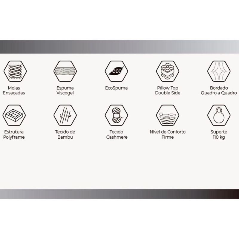 Colchão Queen Molas Ensacadas MasterPocket Royals Sleep C1666 ViscoGel Double Pillow (158x198x35) - Herval