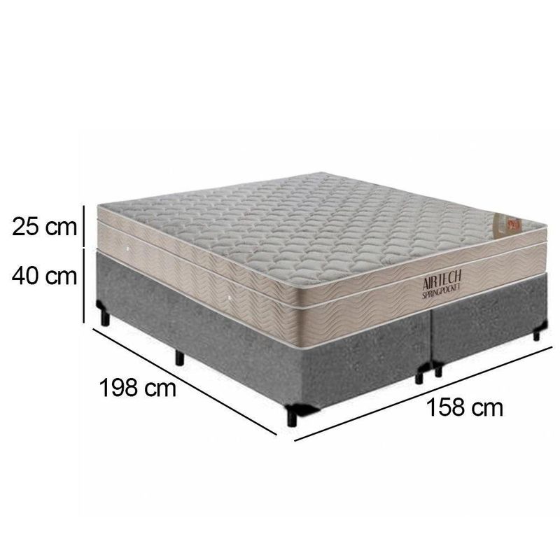 Cama Box Queen Bipartido Suede + Colchão Ortobom Airtech Molas Ensacadas 158x198x65 Cinza