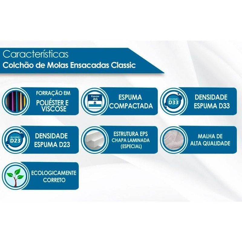 Cama Box Solteiro: Colchão Molas Anjos Masterpocket Enadas Classic + Base Crc Courano White(88x188)