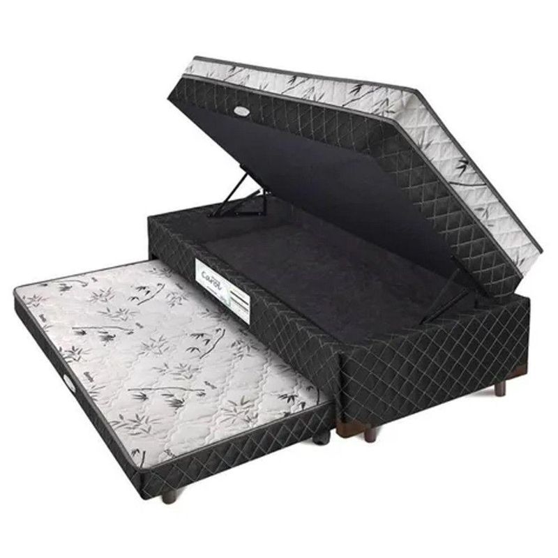Cama Box Solteiro Carol Com Cama Auxiliar E Baú Light Spuma Preto Light