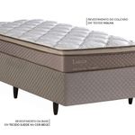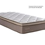 ESPECIFICAÇÕES COLCHÃO Conforto Firme | 194 molas ensacadas p/m² em fio de aço de 2 mm Sistema Air Mesh com respiro e proteção antibactericida Lâminas de espuma de alta performance D20 Tecido Antiderrapante Bordado Pillow Top One Side | bordas de espuma de alta densidade Isolante Feltro Resinado Tecidos: Tampo Malha 98% Poliéster, 2% Viscose | faixa Plano 100% Poliéster | faixinha Malha 100% Poliéster